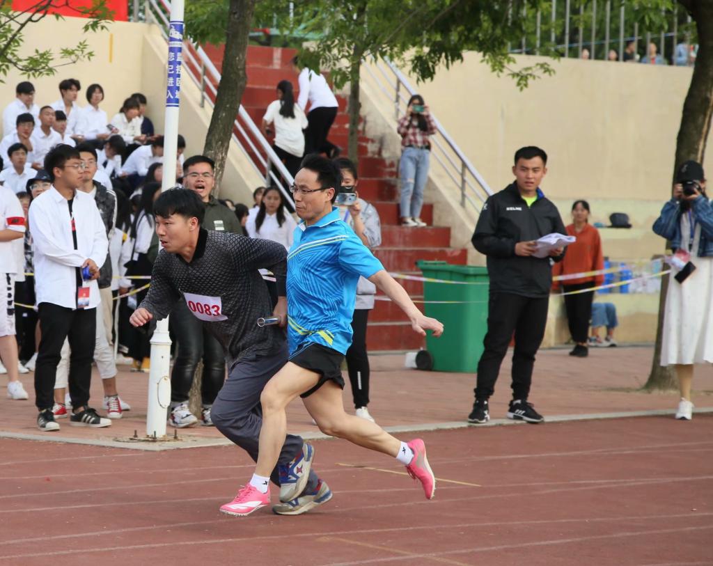 运动会期间,学部老师们走出课堂走进赛场,为运动健儿加油打气,为学部荣誉奋力拼搏,并在在混合趣味接力赛中获得第三名的好成绩。