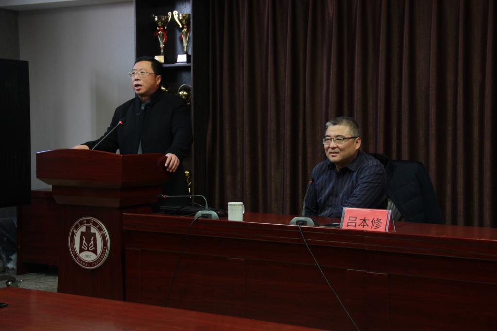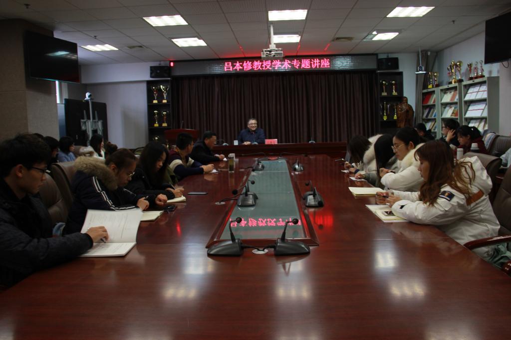 吕本修教授针对传统文化及当代价值提出了自己的观点,他提到:儒释道是传统文化的主要组成成分,而儒家文化更为传统文化中的主流,文化复兴恰逢正时,文化发展更应提到日程。在当今社会,道德的发展尤为重要,通过分析道德选择认识道德建设是必不可少的一方面,通过历史故事进一步阐述在传统文化中,相比较法制更注重道德;另一方面,他指出孔孟之道注重人伦,并对比了传统文化和当代社会中的孝的不同之处,因此,要实现德与法,情与仁统一。吕本修教授儒雅的气度、渊博的知识、学术的严谨、体系的厚重性都给师生们留下了深刻印象。
