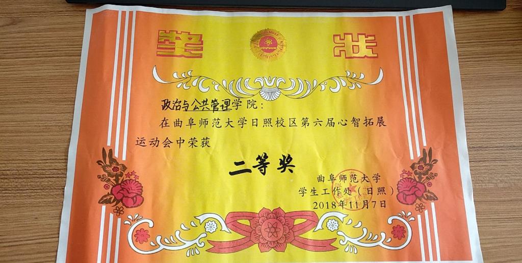 在第六届心智拓展运动会中获得团体二等奖。