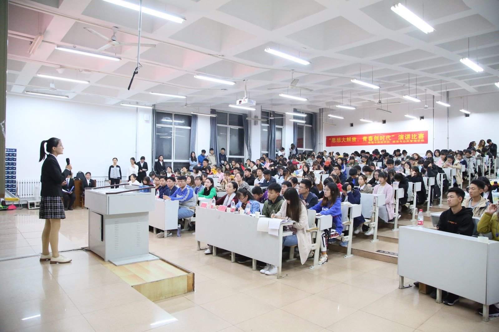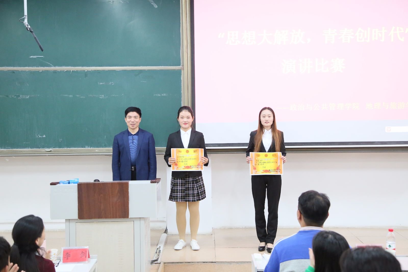 团委书记王元如,地理与旅游学院18级公费师范生班班主任李剑,18级地理科学二班班孙丕苓出席并担任评委,2018级同学踊跃参加。