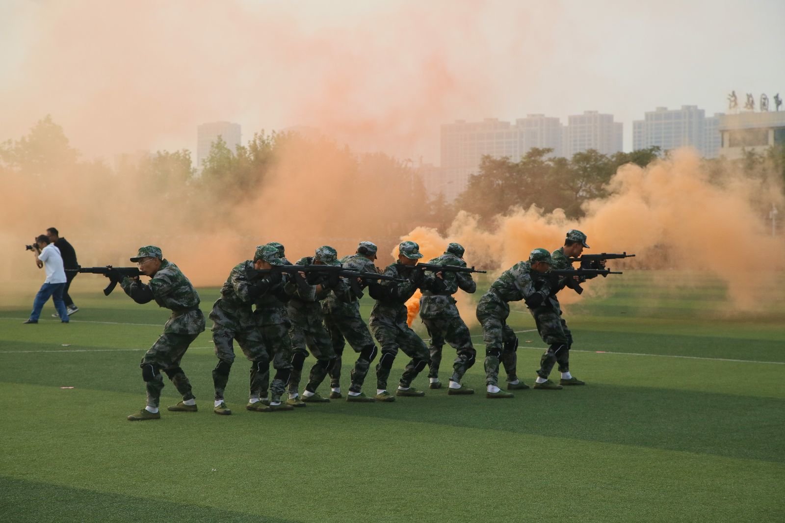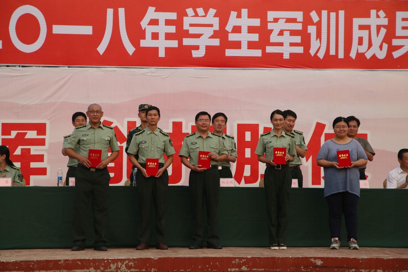 9月22日下午4点,2018级学生军训成果汇演暨表彰大会于西操场召开,学生工作处处长、武装部部长、军训旅副旅长兼参谋长杨永明同志,团委书记、军训旅副政委兼政治部主任宋国栋同志,武装部副部长、军训二团团长赵秀臣同志,以及学校各机关领导和学院党委副书记、新生导员出席大会。大会由学生工作处副处长姚圆鑫同志主持。在军训成果汇报表演中,2018级新生以积极、饱满的状态展示军训风采,每一个动作都展现出同学们扎实的军训成果,一举一动彰显着同学们艰苦奋斗的精神。