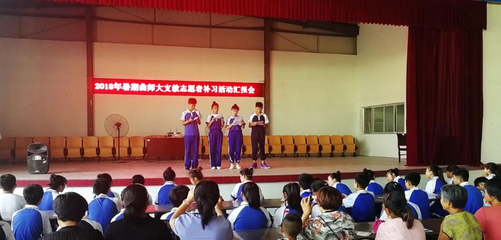 志愿者们也为家长做出来回答:“在不耽误学习的情况下,孩子感兴趣的话应该积极培养,以此促进孩子的全面发展。”支教老师们汇报完毕后,就是学生们展示他们的才艺了。学生们表演了英文诗朗诵、独唱、合唱、啦啦操等节目,为整场的汇报会带来了欢乐和别样风采。