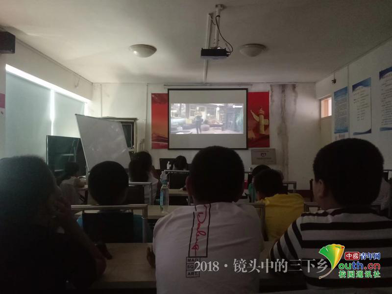 图为小草学堂志愿者为林海社区孩子们播放英文电影。中国青年网通讯员 程晓惠 摄