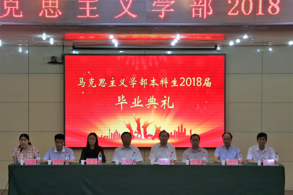 马克思主义学部本科生2018届毕业典礼于图书馆报告厅举行,马克思主义学部主任、马克思主义学院院长李安增,马克思主义学部副主任、赌场