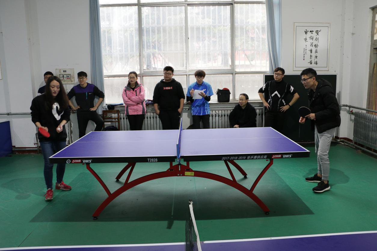、马克思主义学院分别派出一支代表队参加比赛。比赛过程中,本着“友谊第一、比赛第二”的原则,两队展开了激烈角逐,人人热情高涨,气氛热烈,选手们使出浑身解数,发球、搓球、弧圈球、正手攻球等手法完美配合,逐一上演了一场场紧张刺激、精彩绝伦的乒乓球比赛。比赛自始至终充满着紧张、热烈、惊险的氛围,让到场观众喝彩连连。