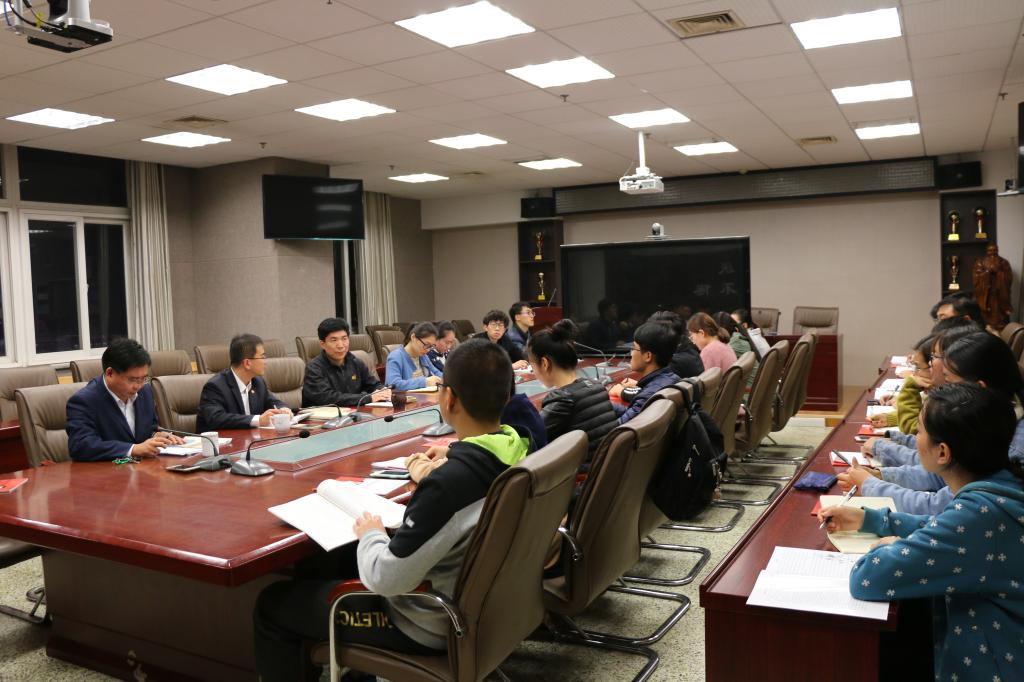 11月2日,校团委副书记孔轶众就团员学习贯彻十九大精神工作到我部进行调研,并与学部师生座谈。学部党委副书记宋钧文、本科生辅导员张华、研究生辅导员宋小叶与会,选拔参加研读、宣讲十九大精神的博硕士研究生、本科生代表20余人参加座谈。
