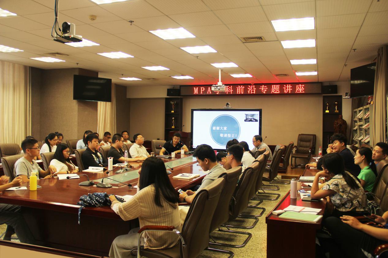 MPA教育中心副主任林士俊,公共管理系主任徐自强及学院研究生与会聆听报告。