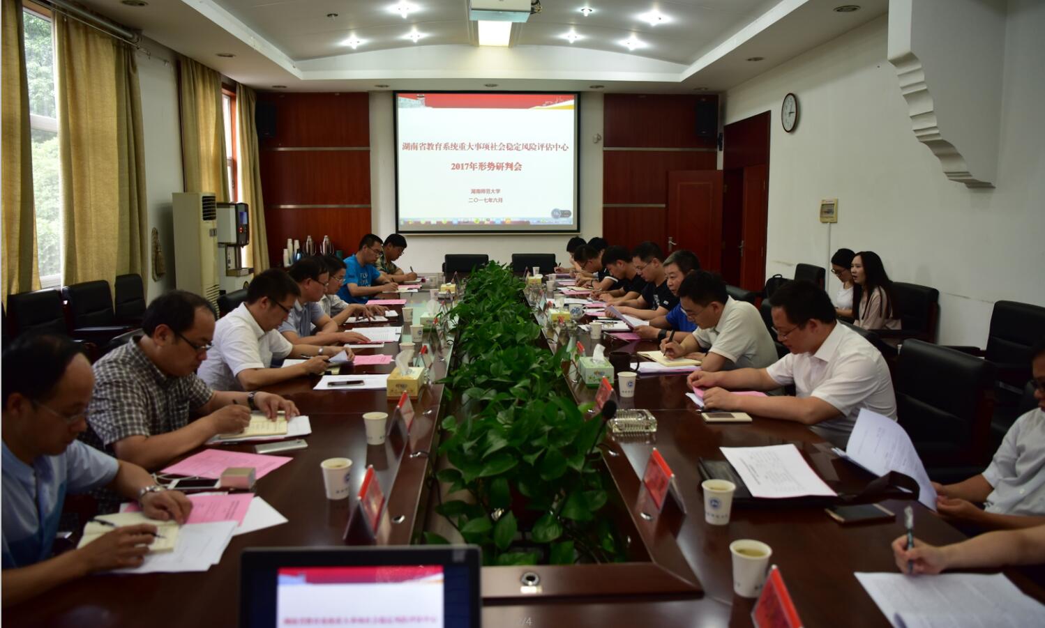 调研小组的到来表示了热烈欢迎。调研小组全程观摩了中心2017年维稳形势研判会以及中心2017年委托课题承担人的课题基本情况汇报,认真学习了湖南省教育系统重大事项社会稳定风险评估中心的运行机制与运作模式,受益匪浅。