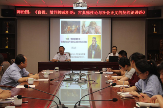 作题为《盲视、赞同抑或拒绝:古典德性论与社会正义的契约论进路》的学术报告。报告由我院院长王维先主持,铁省林、房德玖、林祥磊等老师、相关专业研究生以及部分本科生与会聆听报告。