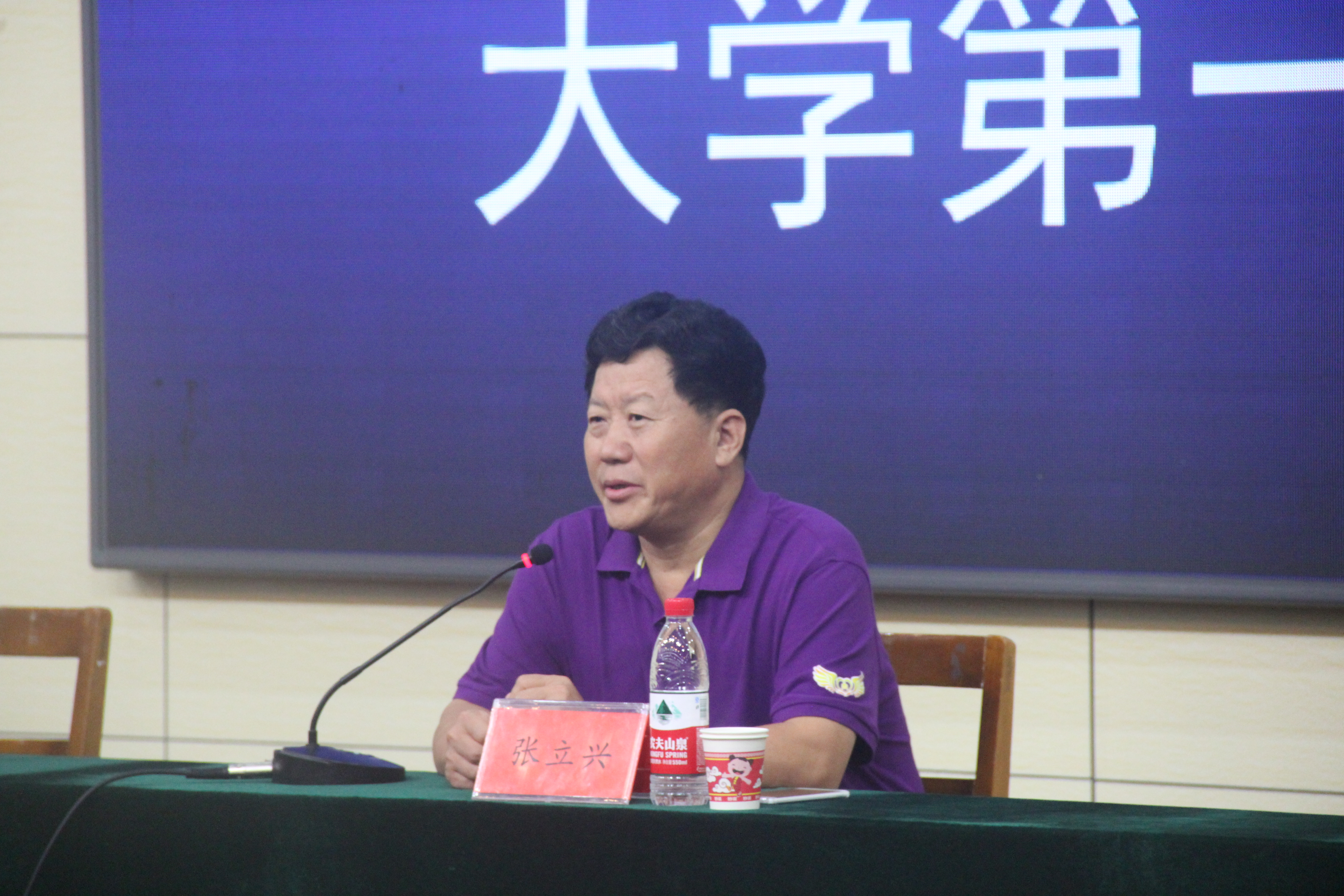 “大学第一课”以两位老师讲课的形式进行。张立兴结合自身求学经历为新生答疑解惑,对于新生如何适应大学生活他提出四点建议:快适应、立目标、走出去、关手机。他表示,学生应该尽快适应大学生活,树立正确的目标,开阔自己的眼界。随后,陈敏就新生宿舍卫生、教室点名、请假制度、入党制度等问题为新生进行详细讲解。她强调,学生在大学里应多参加社会实践,丰富课余生活。两位老师在活动最后表达了对新生大学生活的美好祝愿。