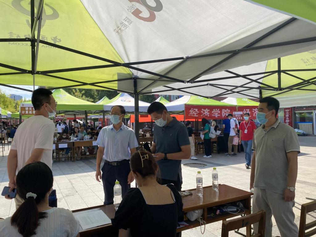 党委书记卢瑞霞、党委副书记张忠凯、副院长李增元、副院长林士俊、辅导员徐莉到迎新现场指导工作,与工作人员交流,保证迎新顺利进行。