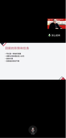 态度决定高度,细节决定成败。林士俊对即将参加研究生考试的考生讲解注意事项,针对疫情防护、考前压力、复习方式、答题事项等进行介绍,在此基础之上对于考试答题作出细节建议,以题型分类的方式帮助考生明确答题基本原则,附以专业课学习内容的实例讲解,生动形象。最后,林士俊对研究生考试考生的住宿问题进行嘱托,提醒各位考生做好个人防护并预祝考生考研成功。