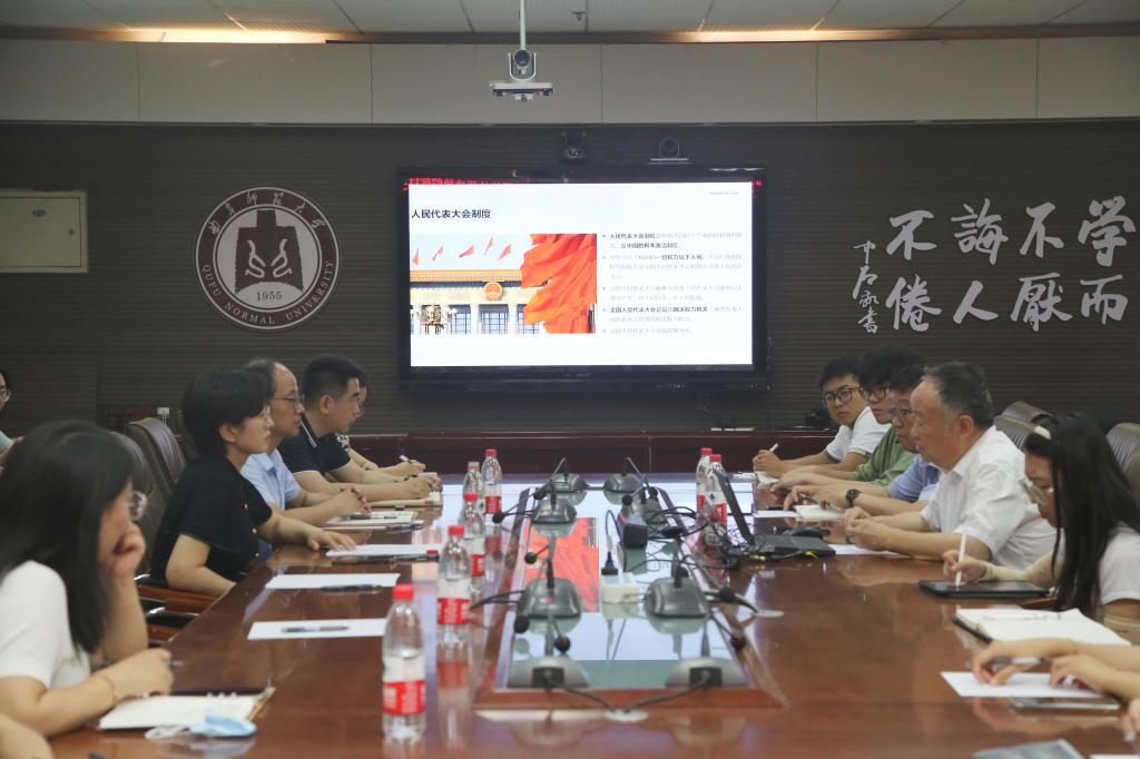 于JC909会议室顺利举行“筑牢思想根基,开创发展新局”主题教育之“全国人大代表面对面”活动第二期暨校外思政导师聘任仪式。本次活动邀请到了山东五征集团有限公司党委书记、董事长、技术中心主任,第十一届、十二届、十三届、十四届全国人大代表姜卫东作了“人民代表大会制度和代表职权介绍”主题报告。学校党委常委、副校长胡凡刚出席,活动由学院党委书记卢瑞霞主持,学院教职工党员、学生党员、入党积极分子、主要学生干部积极参加。