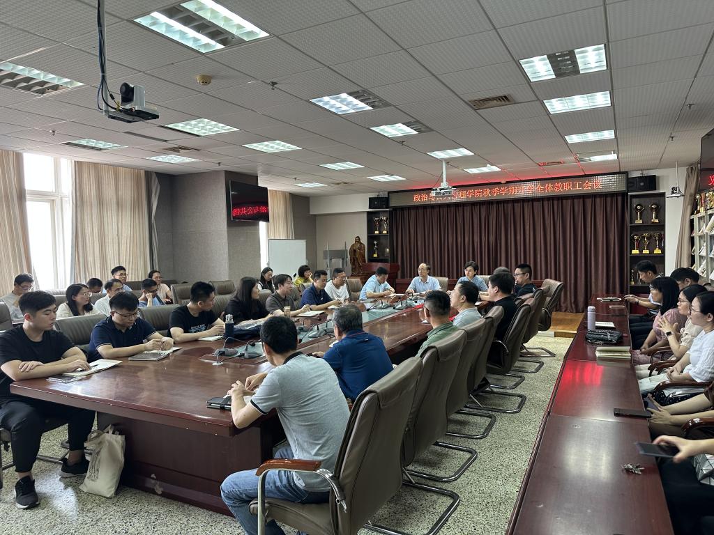 于JC909会议室召开秋季学期开学全体教职工会议,学院全体教职工参加会议,会议由学院副院长李增元主持。