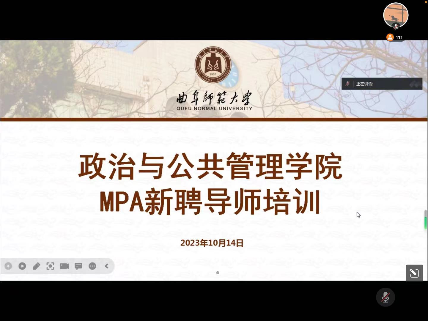 副院长、MPA教育中心主任李增元,MPA教育中心副主任徐自强,研究生辅导员徐莉,教学秘书辛雨佳,2022年聘任的17位MPA学术导师分别于线上线下参会,会议由徐莉主持。