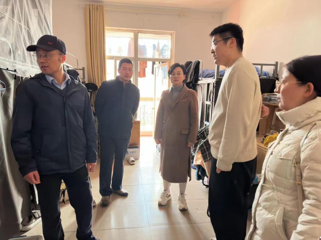 2月25日下午,学院领导与辅导员们先后到研究生宿舍和本科生宿舍走访,了解同学们返校情况,排查安全隐患,并与同学们亲切交流。老师面对面倾听学生心声,了解同学们的开学准备情况,叮嘱同学们注意路面结冰,上学注意防滑,在宿舍注意用电安全,离开宿舍要断电,遇到问题和困难及时跟辅导员联系。