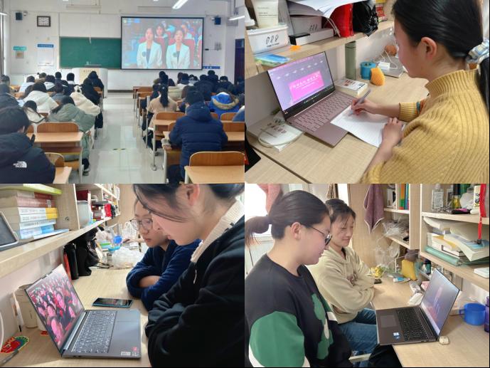 直播过程中,全体师生认真观看学习并记录重要内容,部分同学在宿舍自行观看学习。