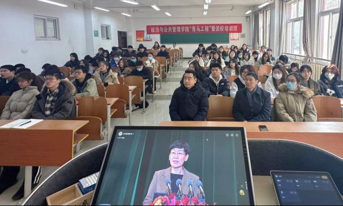 学院辅导员和青马工程学员在JS105集体观看直播。青马工程学员在学习结束后都写下了自己的感悟,赵雨晴同学表示在学习结束后,认为学生也要深刻领悟教育家的奋斗精神,从而提高自身学习能力,为下一步进入社会亦或是成为一名人民教师打下坚实基础。
