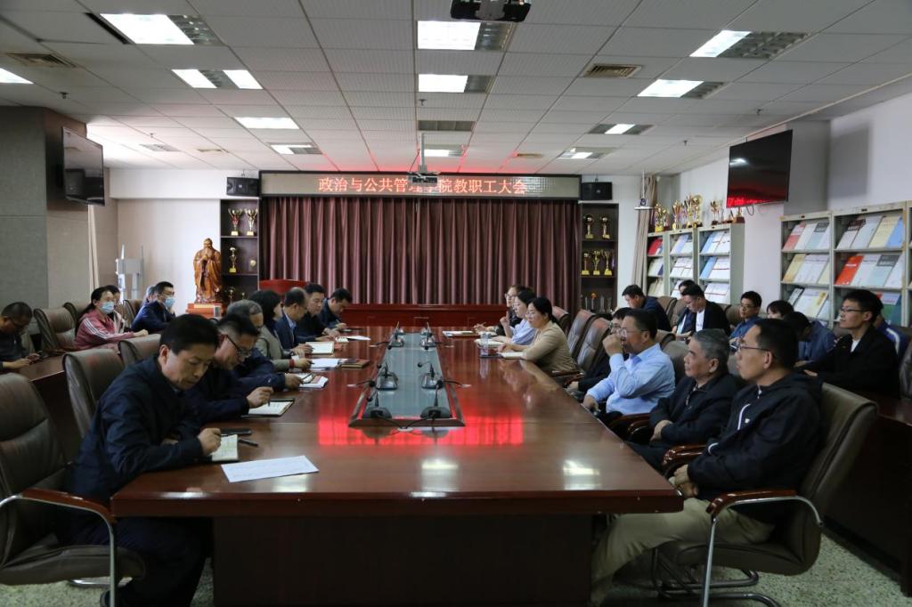 于JC909会议室召开全体教职工大会,学院领导班子及全体教职工参加,会议由学院院长李增元主持。