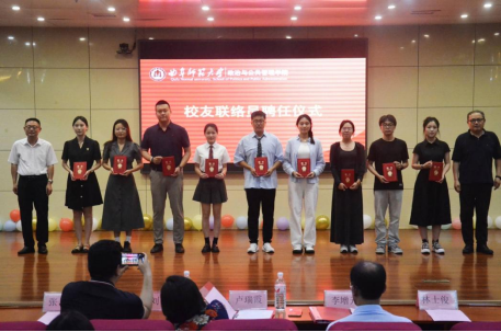 学院副院长林士俊、刘伟为校友联络员颁发聘书。