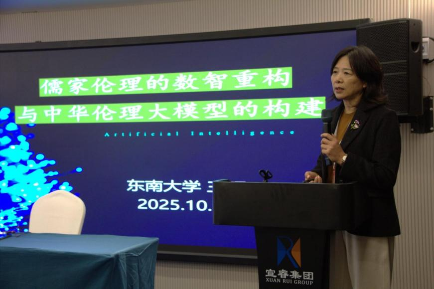 在学术研讨阶段,中国伦理学会副会长、东南大学教授王珏率先作主旨报告,聚焦传统与技术的融合,提出儒家伦理的本质是“实践理性”,其核心在于“知行合一”——不仅强调伦理认知的深度,更注重伦理行为的落地。她认为,当前人工智能大模型的发展,既为儒家伦理的实践化提供了全新路径,也为儒家伦理与前沿技术的融合开辟了新的空间。