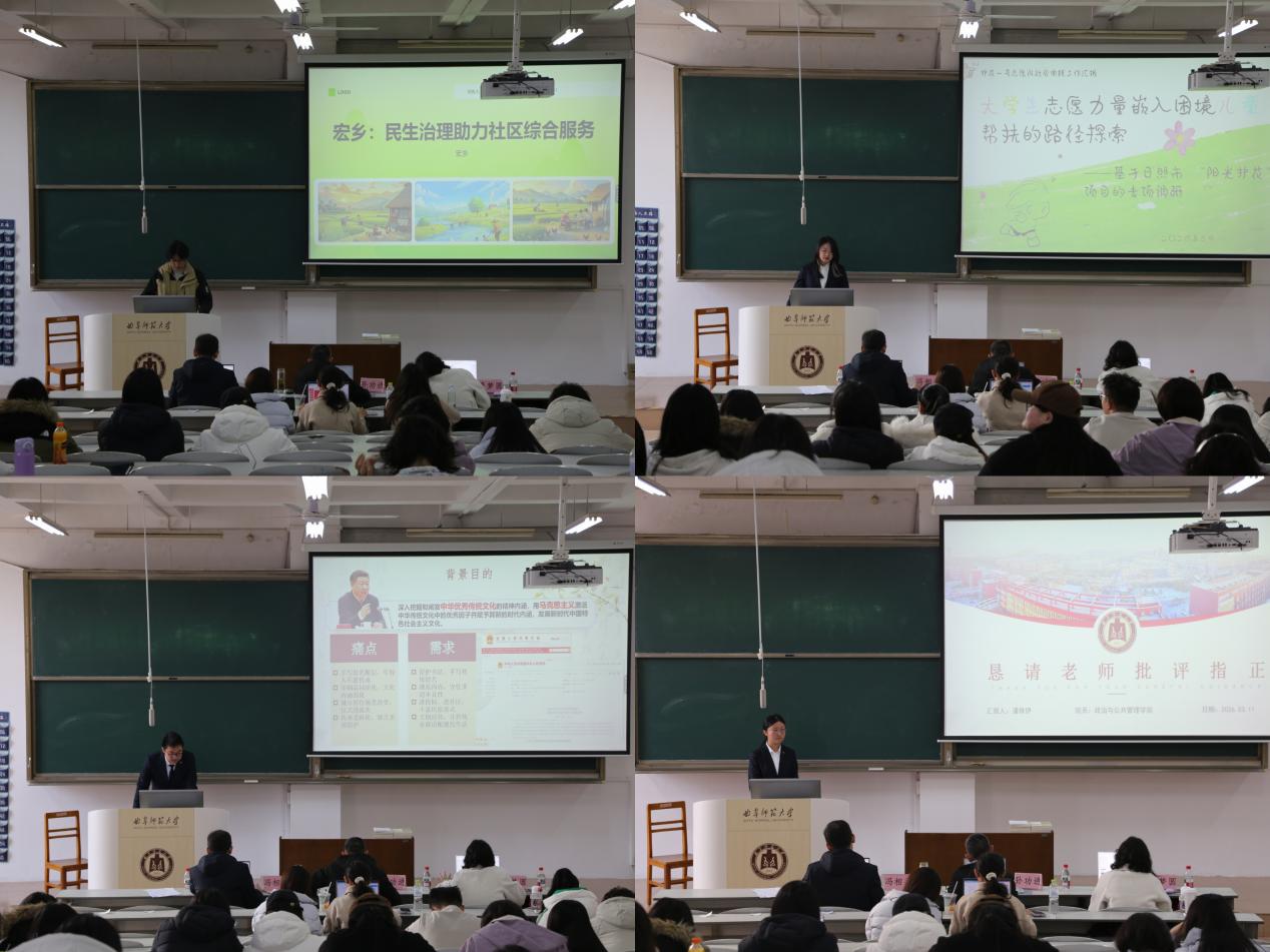 答辩尾声,评委老师们寄语全体学子,希望大家能把此次社会实践的所见所闻、所学所获转化为成长路上的不竭动力,始终厚植家国情怀、站稳人民立场,持续锤炼过硬专业本领,把个人理想融入国家发展与社会进步的大局之中。整场活动充分彰显了政管学院青年学子的责任担当与昂扬向上的青春风采,也让学子们深刻认识到,社会实践既是锻炼能力、增长才干、淬炼自我的宝贵课堂,更是促进个人全面发展、践行青年使命的重要路径。