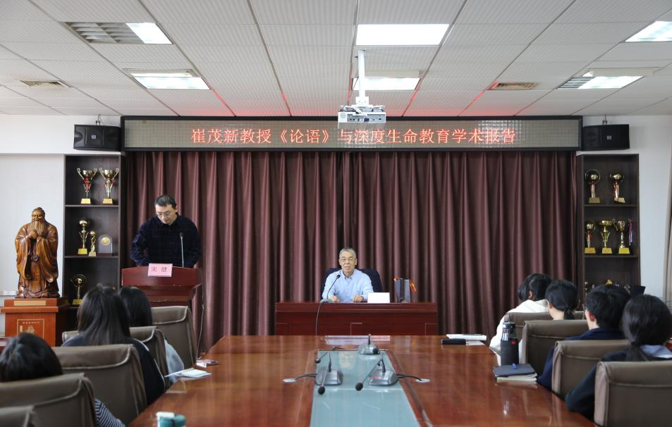 文学院崔茂新教授于JC909会议室作“《论语》与深度生命教育”学术报告会,报告会由学院院长助理宋健副教授主持,学院师生积极参与。