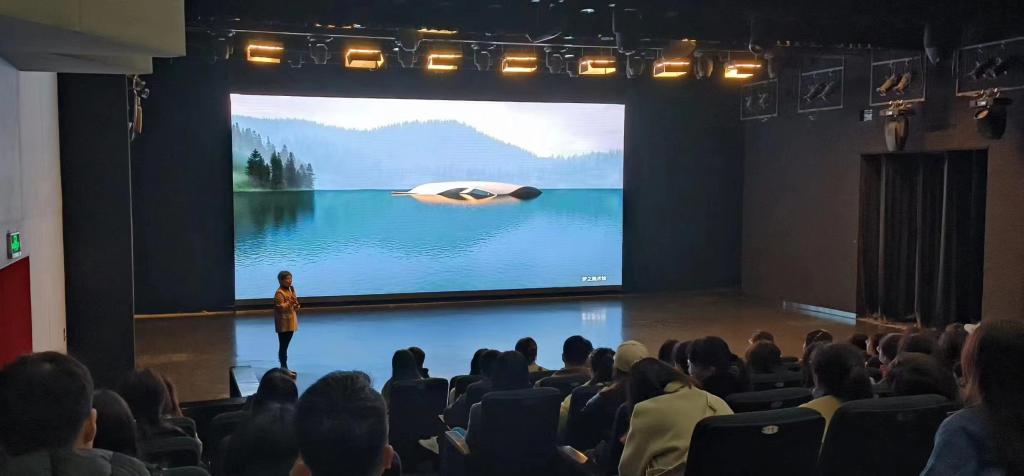 活动中,山东白鹭湾有限公司品牌创意中心总监孙倩老师为同学们介绍了白鹭湾社区的建设理念和发展趋势,她围绕自然之美、艺术之美、生活之美、生命之美四个方面展示了白鹭湾的品牌形象。