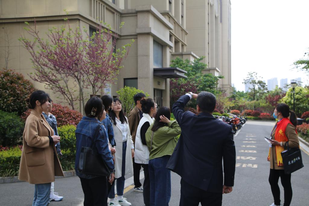随后,同学们分为四组,由相应的网格员带领参观了凌云社区星河港湾网格、民政局小区网格、港烟小区网格和海曲世家网格,网格员向同学们展示了“红馨楼栋建设”“社区领办物业服务”“红色物业建设”等特色网格服务。同学们认真倾听网格员的讲解,并结合专业知识围绕社区管理同网格员进行交流,进一步了解凌云社区管理现状。